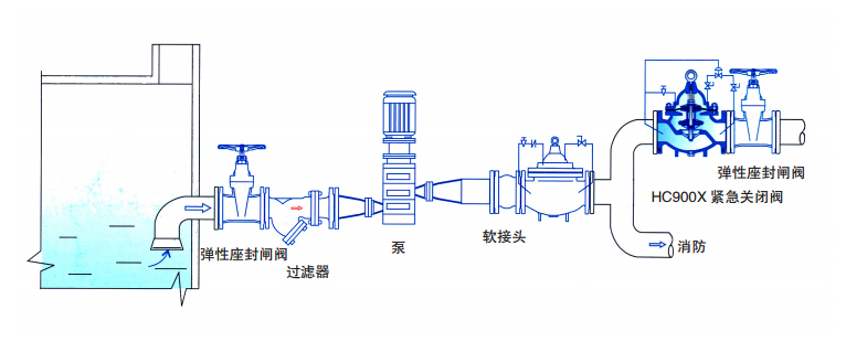 HC900X 緊急關(guān)閉閥,是一種用于消防用水與生活用水并聯(lián)的供水系統(tǒng)中,用來調(diào)配供水方向的閥門。當火災(zāi)發(fā)生時,消防急需大量用水,HC900X 緊急關(guān)閉閥立即切斷生活用水,確保足夠的消防用水;當消防停止用水壓力減小時,閥門自動打開,呈常開狀態(tài),恢復(fù)生活供水。該閥使系統(tǒng)無須另設(shè)專門的消防單獨供水管網(wǎng),大大地節(jié)約了建設(shè)成本和用水量。閥門控制靈敏度高,安全可靠,調(diào)試簡便,使用壽命長。